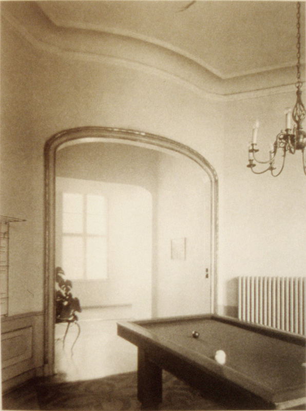 Rekonstruktion des Schlafzimmers der Prinzessin Amalie.Aus dem ehemaligen Billardzimmer, das den Patienten des Sanatoriums zu DDR-Zeiten als Afenthaltsraum diente, wurde in Zusammenarbeit mit dem Brandenburgischen Landesamt für Denkmalpflege nach Messbildern und historischen Aufnahmen, sowie Panelresten und Stücken der originalen Spiegelumrahmung die historische Alkovenstruktur wieder hergestellt.Die nachgewebte blaue Seidentapete, sowie die friederizianischen Türen mit ihren Spiegelflächen und die rekonstruierten Holzpanele vermitteln heute den ursprünglichen Raumeindruck aus der Zeit Kronprinz Friedrichs, dem späteren Friedrich II .Zu dem Auftrag gehörte ein Raumbuch, das den Zustand der öffentlichen Räume während der Nutzung als Sanatorium dokumentierte und die Anpassung der vorhandenen Wandpanele des roten Salons und des chinesischen Zimmers an das moderne Heizsystem darstellte.